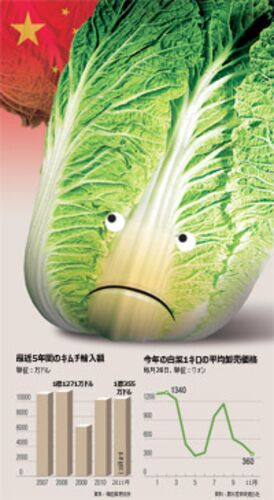 中国産キムチ、輸入が過去最大に キムチ消費に伸び悩む韓国、子供や歯の悪いお年寄りが敬遠する理由とは 最大の消費国でありながら今やそのすべての原材料を中国から輸入する韓国の事情 http://www.chosunonline.com/site/data/html_dir/2011/11/30/20111130…