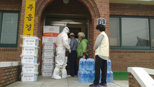 村を丸ごと隔離はもうひとつあった 宝城郡、メールス隔離 注音町17世帯、32人に救援物資伝達 http://www.schinews.com/ArticleView.asp?intNum=23799&ASection=001043 http://joongang.joins.com/article/660/18006660.html ほか ▲災害救護協会からの生活必…