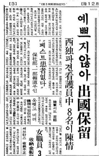韓国の看護師のドイツ派遣史が始まった1966年1月、小さな騒動が起こった。ある新聞の報道によると「保健社会部(省に相当。保社部)が最初の派独看護師に選んだ128人のうち8人が、『顔がきれいではない』という理由により土壇場で出国保留になったため、該当者が当局に陳情して無念を訴えた」というものだ(京郷新聞1966年1月14日付)。