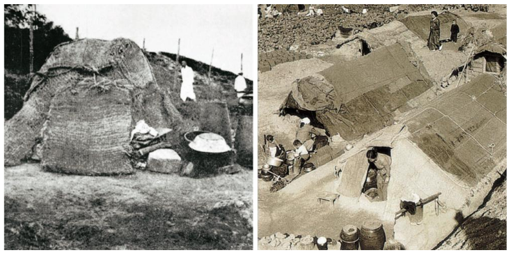 土地所有(私有)の概念が無かった朝鮮時代には、住処に土台を作ることが認められ無かったため、柱と筵(むしろ)を組み合わせて暮らすところを即席していた。